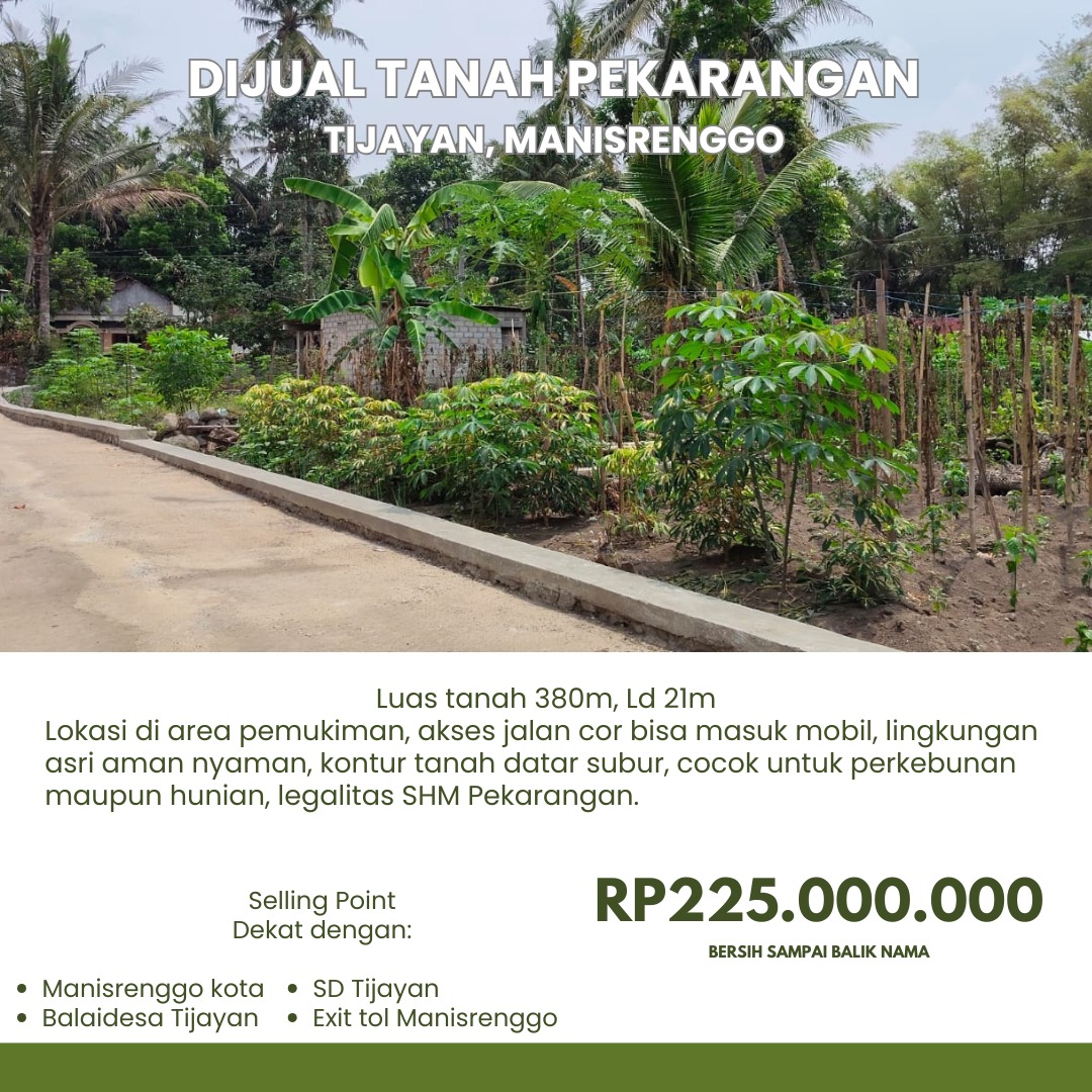 Deskripsi: COCOK UNTUK HUNIAN MAUPUN PERKEBUNAN TANAH PEKARANGAN DITENGAH DESA TIJAYAN, MANISRENGGO