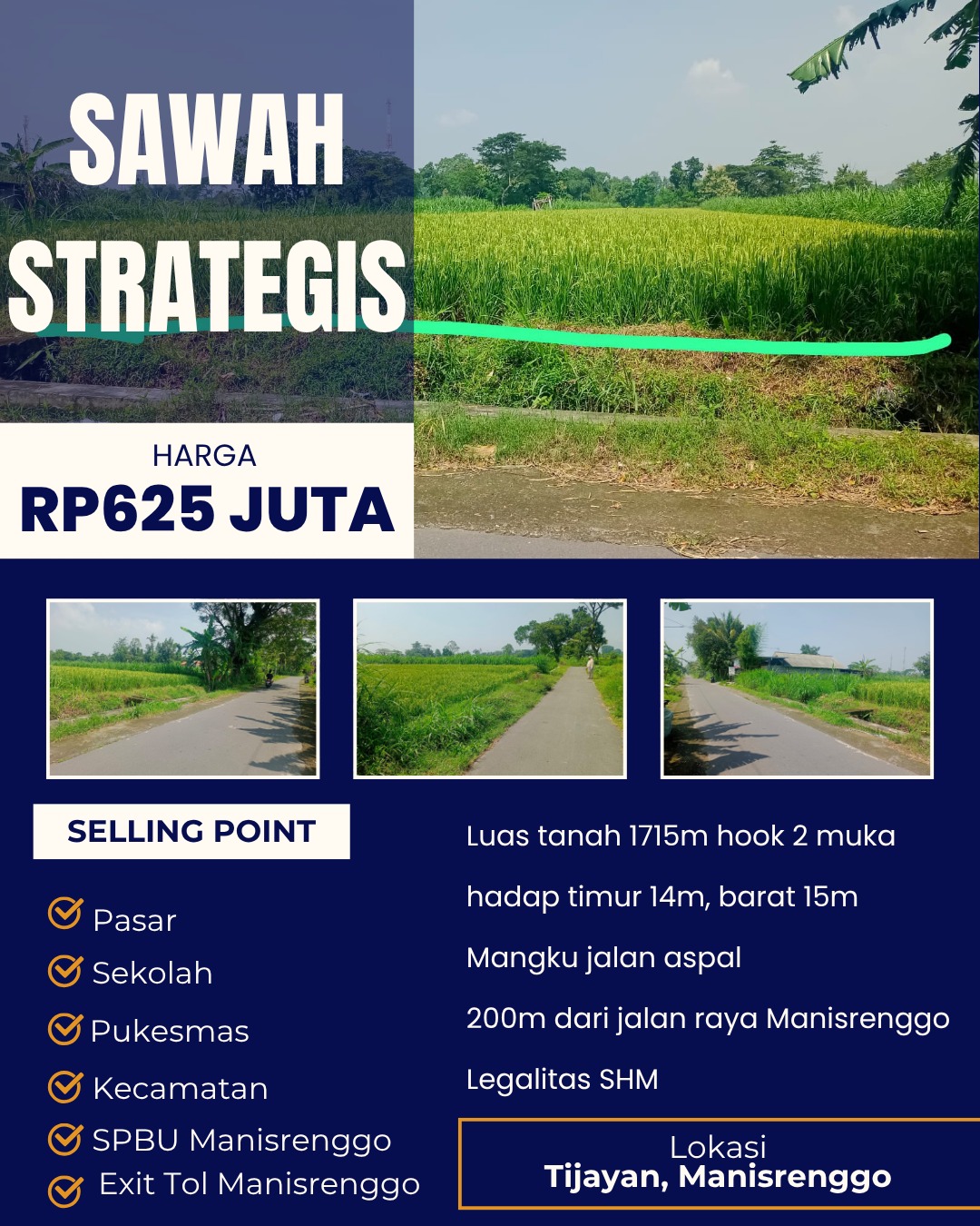 Deskripsi: SAWAH STRATEGIS MANGKU JALAN DAN DEKAT TOL MANISRENGGO