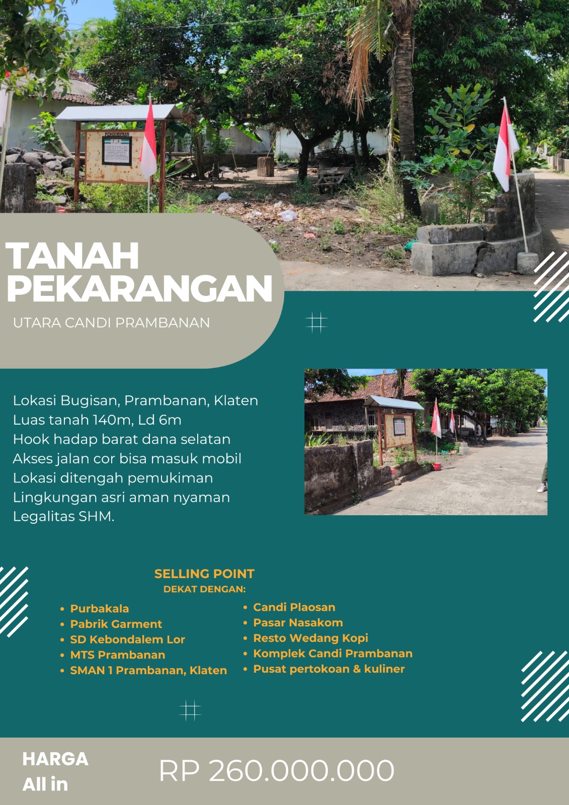 TANAH PEKARANGAN DI TENGAH PEMUKIMAN DEKAT CANDI PLAOSAN
