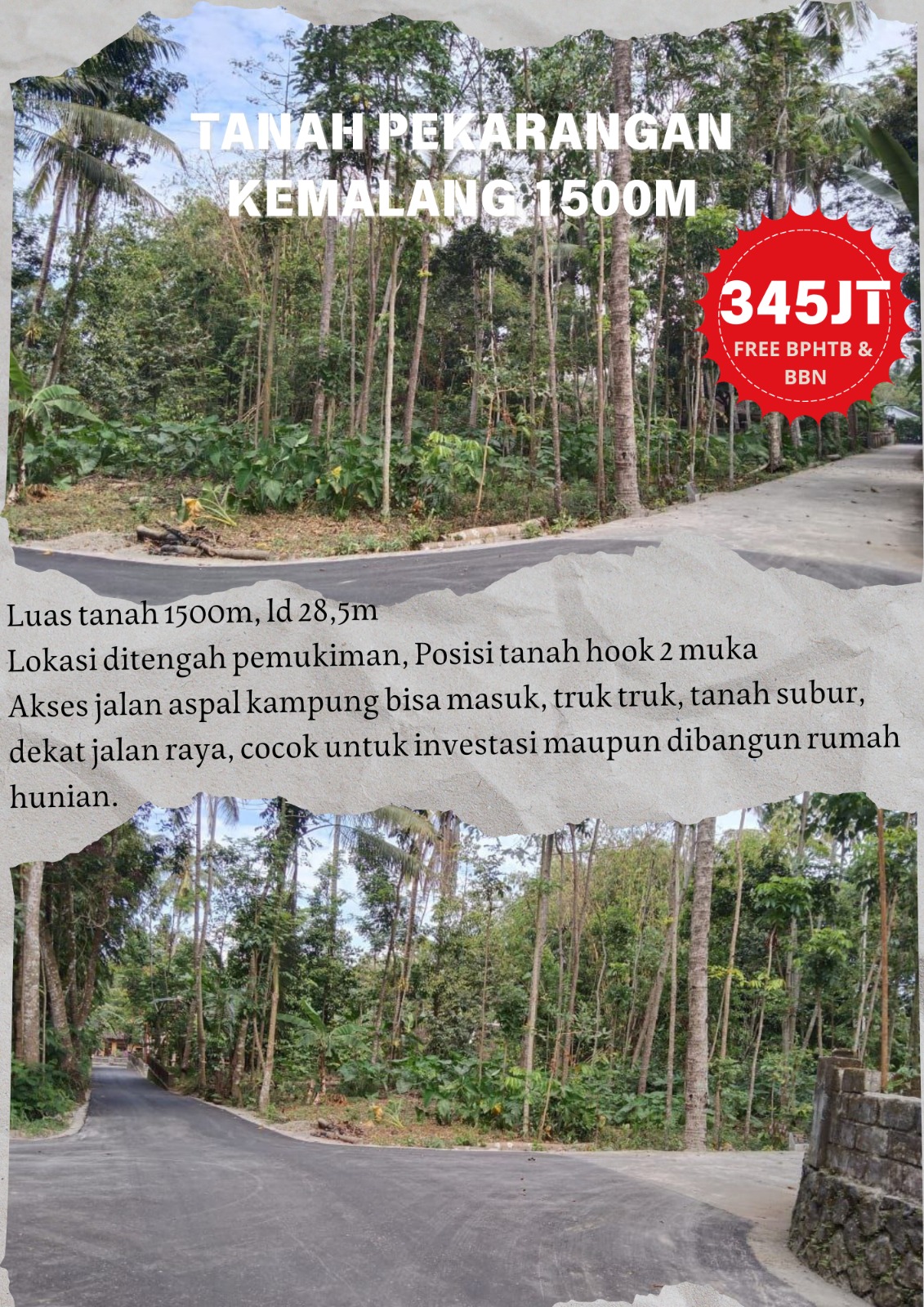 Deskripsi: TANAH PEKARANGAN PANGGANG, KEMALANG LUAS 1500M